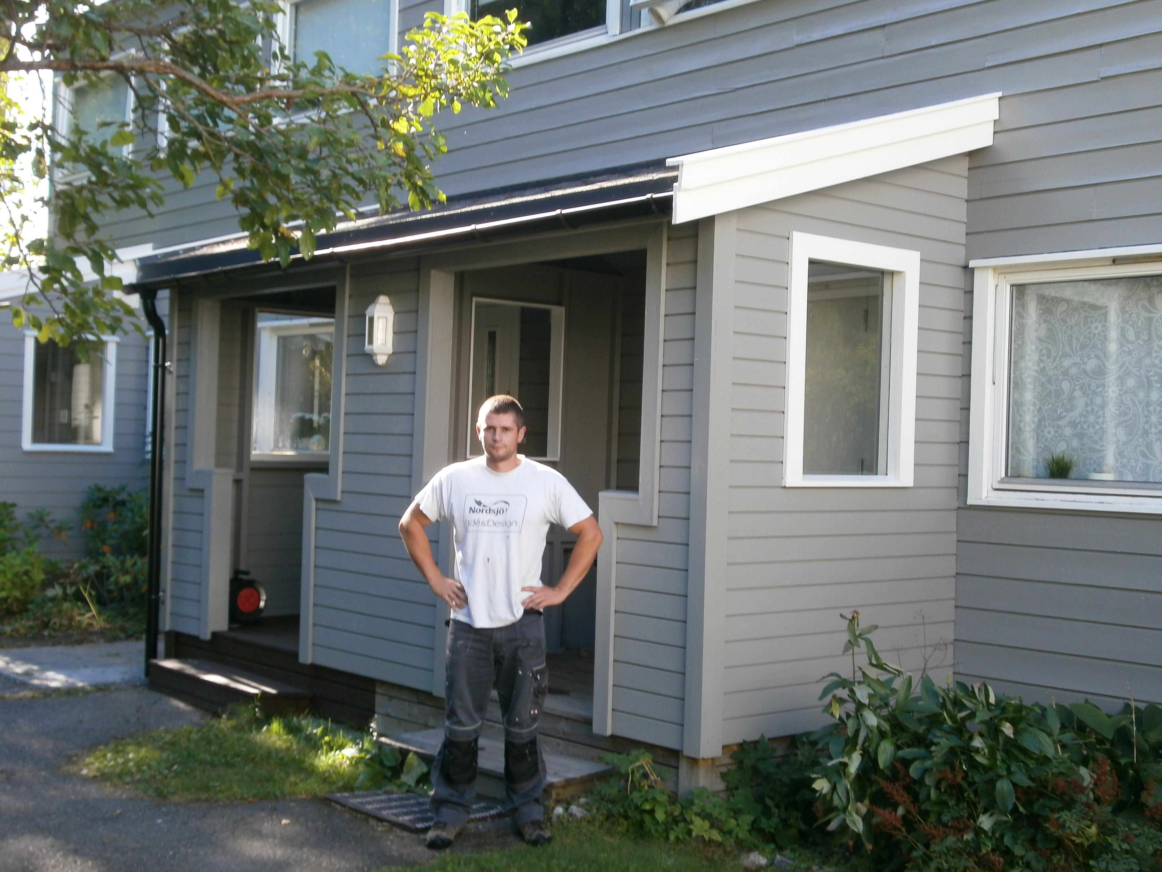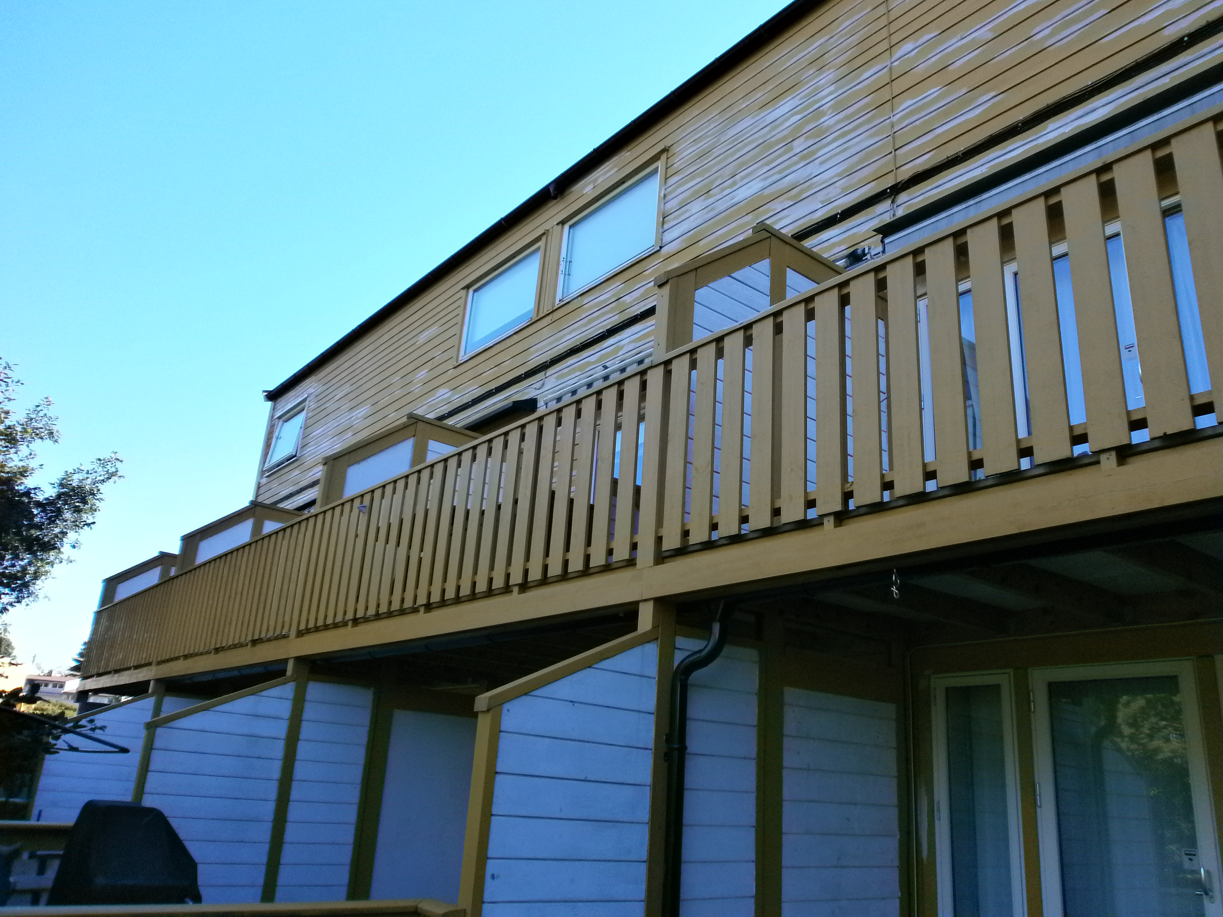 Work: Washing, spreading sopp og algedreper, changing of some roten panels, scraping and priming where there was a need and painting two strokes.