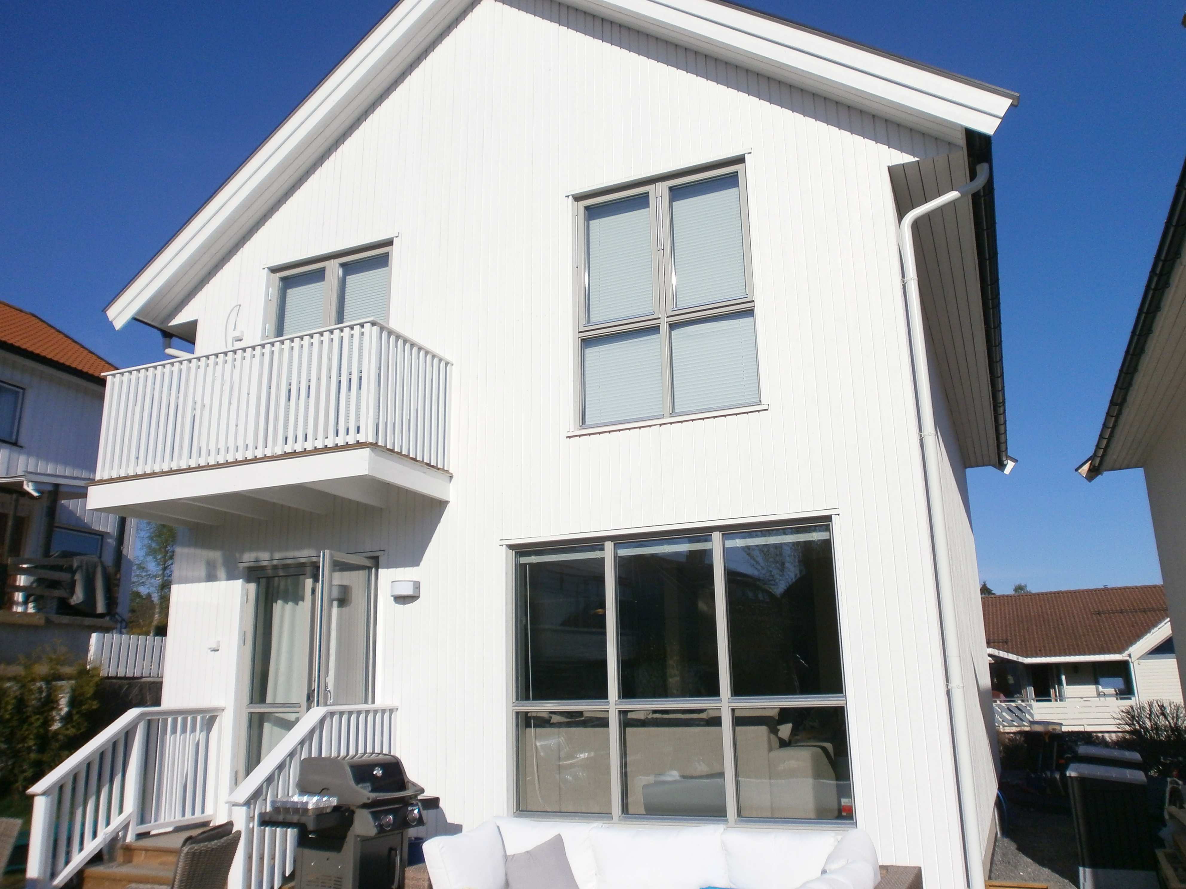 Work: Washing, spreading sopp og algedrepper, priming unpainted places and painting two strokes.